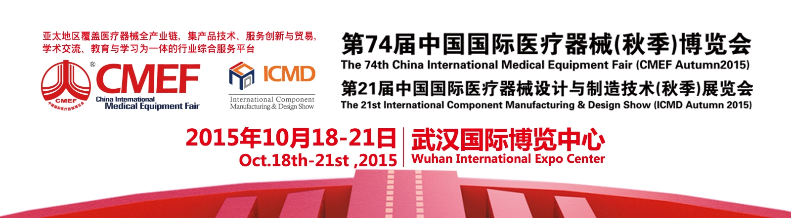 醫(yī)療器械界萬眾矚目的第74屆中國國際醫(yī)療器械博覽會-2015CMEF武漢秋季醫(yī)療器械展會,將于2015年10月18-21日在武漢國際博覽中心舉辦。屆時有來自20多個國家的2600余家醫(yī)療器械生產(chǎn)企業(yè)和超過100多個國家和地區(qū)的150000人次的政府機(jī)構(gòu)采購、醫(yī)院買家和經(jīng)銷商匯聚CMEF交易、交流匯聚于此,場面盛大壯觀,值得期待。