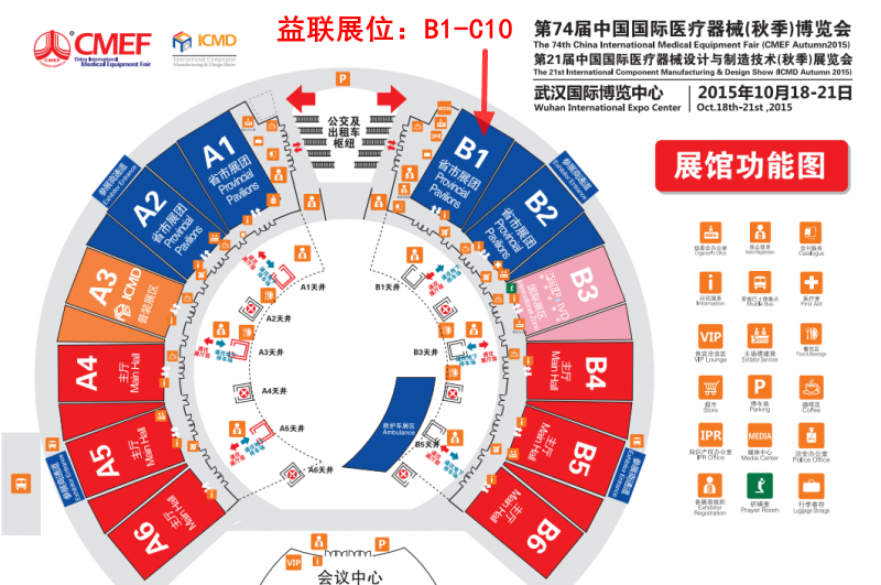 第74屆CMEF秋季益聯(lián)展位 B1-C10,2015.10.18-21 武漢國際博覽中心(武漢市漢陽區(qū)鸚鵡大道619號)上海益聯(lián)醫(yī)學(xué)歡迎新老客戶蒞臨指導(dǎo)、洽談合作。