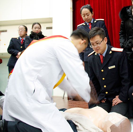 春運(yùn)火車大多擁擠,路途上碰到緊急事件?瓦\(yùn)一線列車員應(yīng)該掌握心臟復(fù)蘇技巧。如果客運(yùn)段患有先天心臟病、冠心病、急性心梗的乘客突然出現(xiàn)心臟驟停,在4分鐘之內(nèi)正確施救,搶救成功率能達(dá)到60%到70%,而救護(hù)車快也要10分鐘后才能到達(dá)。作為公認(rèn)的“救命要術(shù)”,心肺復(fù)蘇術(shù)已發(fā)明55年。而在我國(guó),目擊者對(duì)心臟驟;颊邔(shí)施心肺復(fù)蘇的比例僅有15%—30%;國(guó)人至今仍有八成以上不會(huì)心肺復(fù)蘇,而真正明白“黃金搶救4分鐘”概念的更是寥寥無(wú)幾。