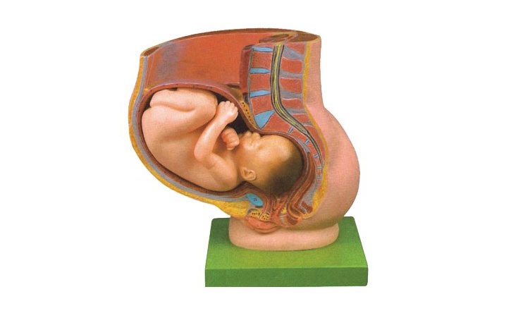 改模型由骨盆子宮和妊娠九個月胎兒兩個部件組成,并顯示子宮、陰道、膀胱、直腸和胎兒、羊膜、胎盤、臍帶等結(jié)構(gòu),共有38個部位指示標(biāo)志。