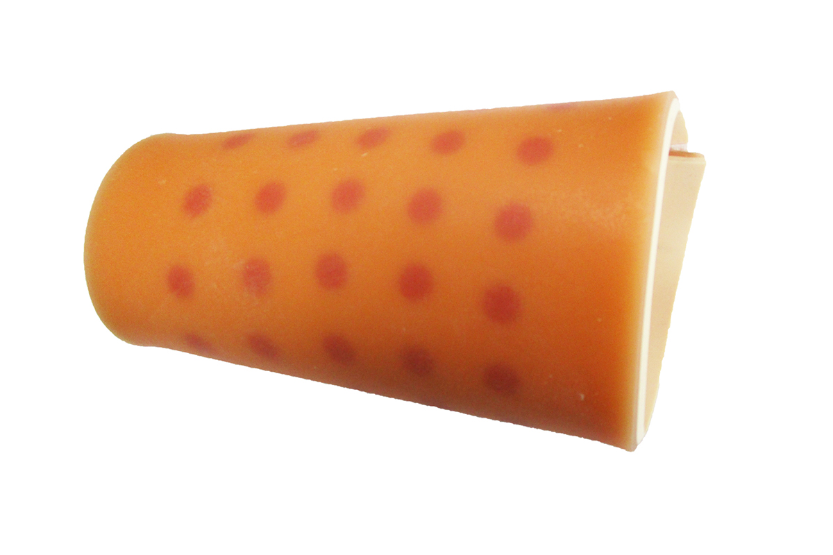 環(huán)形外套提供幾十個皮內(nèi)注射點練習(xí),可方便套在模型人手臂上可實現(xiàn)5°的進(jìn)針角度,正確操作時會出現(xiàn)真實的皮丘,皮丘與皮試陰性結(jié)果極其相近,抽出液體后皮丘消失。