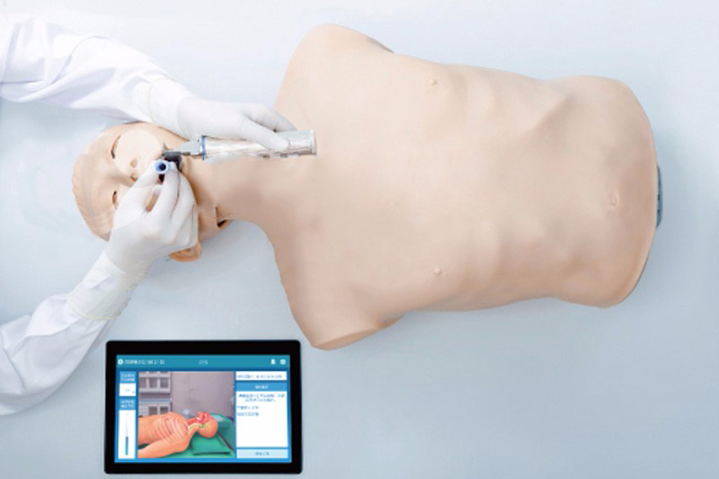 氣管插管智能模擬訓(xùn)練系統(tǒng)是我公司研發(fā)的用于成人經(jīng)口氣管插管操作訓(xùn)練的產(chǎn)品,包含模擬人和手機(jī)軟件兩大部分。模擬人皮膚及軟組織的材質(zhì)環(huán)保耐用、彈性好、觸感真實(shí),具有解剖標(biāo)志準(zhǔn)確、形態(tài)逼真、外形美觀等特點(diǎn),可進(jìn)行經(jīng)口腔氣管插管技術(shù)的教學(xué)、訓(xùn)練和考核;軟件可控制模擬人的相關(guān)參數(shù),實(shí)時(shí)監(jiān)測操作過程中插管位置、深度等參數(shù),并配有相關(guān)檢測的動(dòng)畫提示、詳細(xì)文字提示以及報(bào)警提示。此外,本系統(tǒng)軟件還包含了豐富的教學(xué)內(nèi)容。適用于醫(yī)護(hù)院校的學(xué)生,初級臨床醫(yī)護(hù)人員、各類現(xiàn)場急救人員培訓(xùn)。
