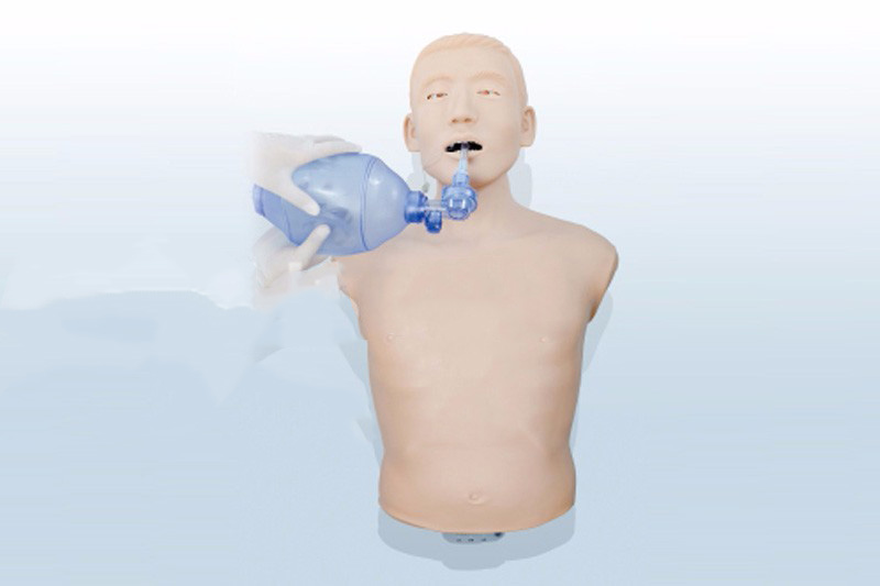 1.模型仿真模擬成年男性上半身,仰臥位,嘴可張開,可使用仰頭抬頜等手法進(jìn)行氣道開放;