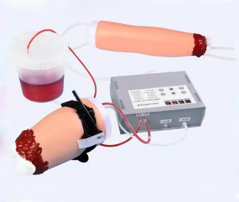 模擬人體上下肢外傷斷肢傷出血情景,外形逼真,體表標(biāo)志清晰可觸及,配有模擬血液、止血帶,可供進(jìn)行上下肢止血帶加壓包扎止血訓(xùn)練。電子血液循環(huán)裝置組成,具有真實(shí)的血流動(dòng)力學(xué)所產(chǎn)生的血液循環(huán)功能,具有操作真實(shí)、功能強(qiáng)大等特點(diǎn)。